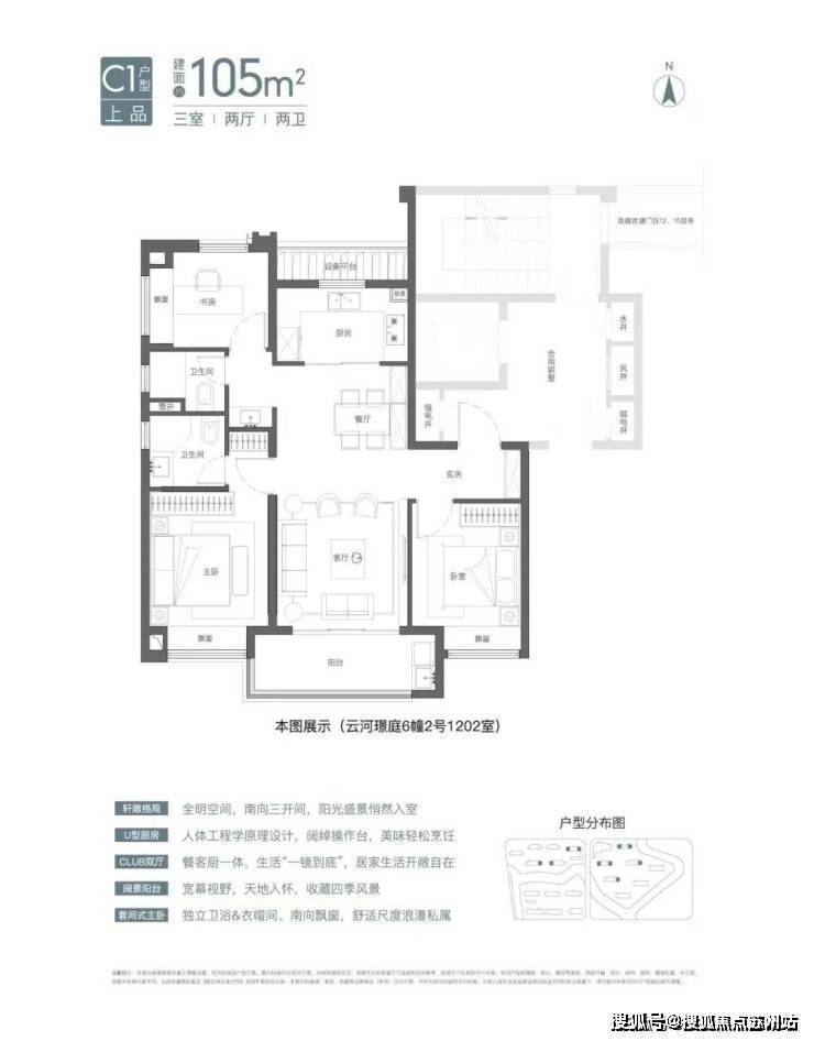 建面约105㎡3房2卫有宽厅和竖厅两种风格,其中宽厅户型好评度颇高。
