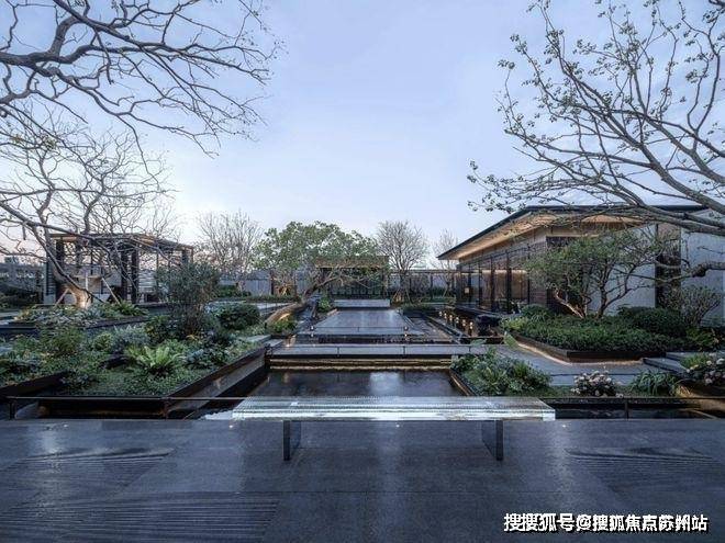打造长约200米、近1000㎡水系景观,贯穿入口、庭院、归家轴线和景观主轴,采用五重造水形态,可行、可望、可游、可居,正是中式园林所追求的空间意境。