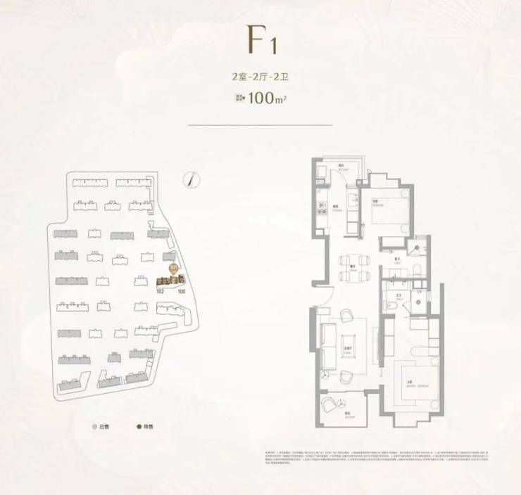 建面约100㎡2房2卫,这是整个天安1号B区唯一一个总价在千万以内的产品,上车首选。