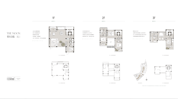 约350㎡联排合院:有天有地有庭院,承载中国人骨子里的院落情怀,私密性与家庭欢聚空间兼得,是经典的望月合院产品。