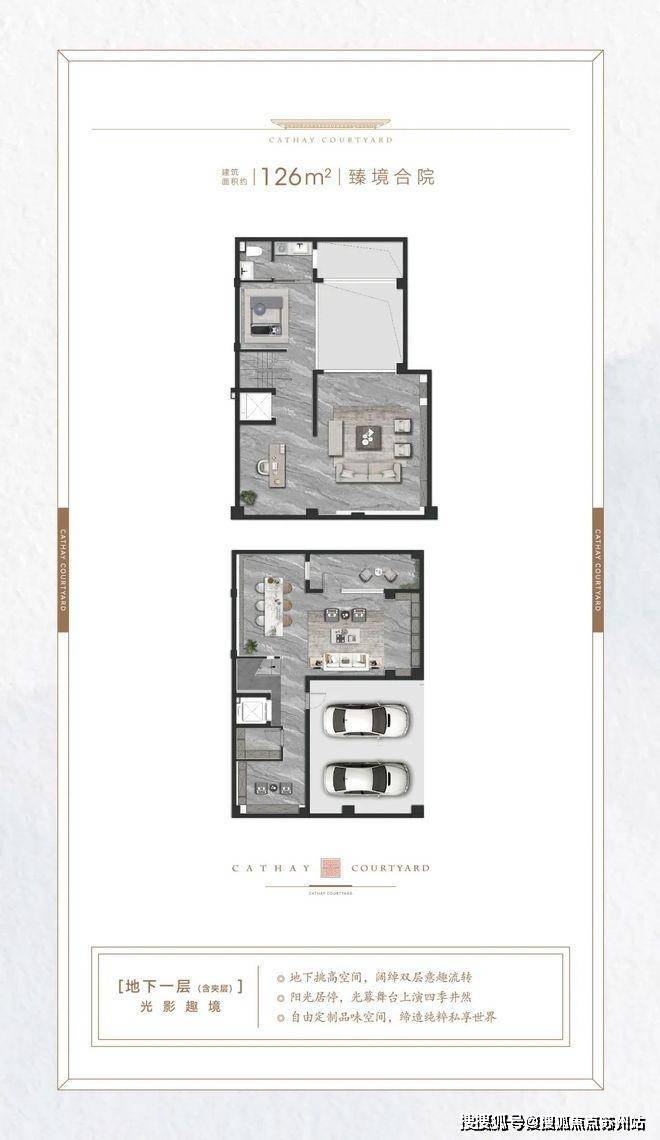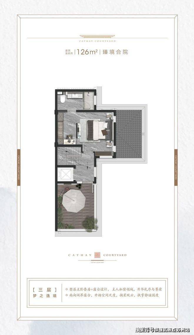 建面约126㎡的合院户型,同样适合三代同堂,或者三口之家以及高净值年轻夫妻等家庭。