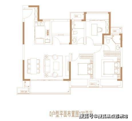 建面约120㎡4房2厅2卫: