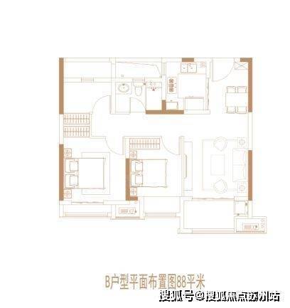 建面约88㎡3房2厅1卫: