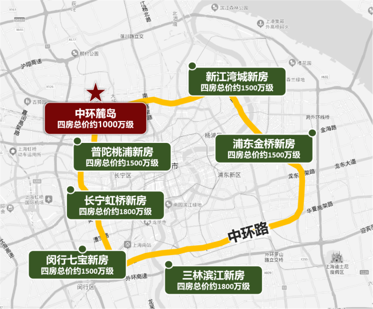 我前阵子查了中环沿线的新盘数据,1000w预算大多只能买到100㎡左右的三房。