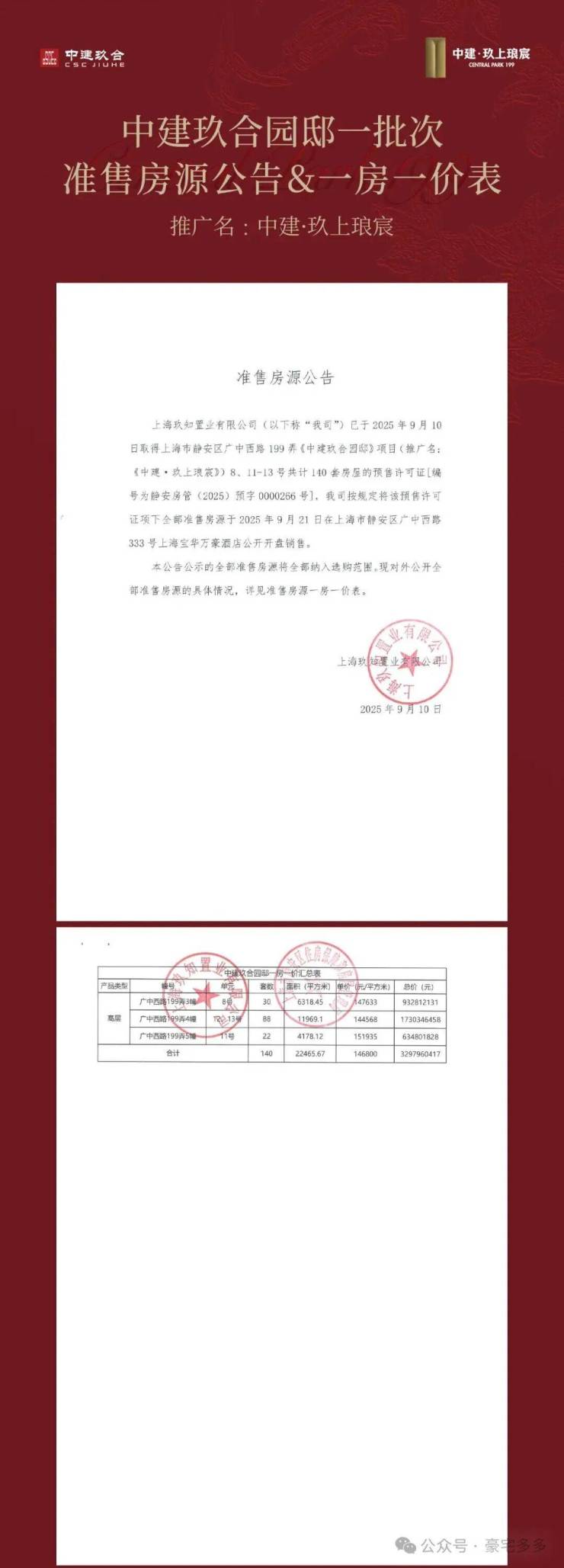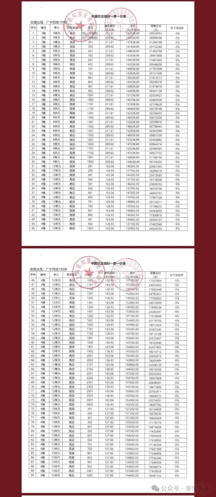 【中建玖上琅宸】一批次一房一价表