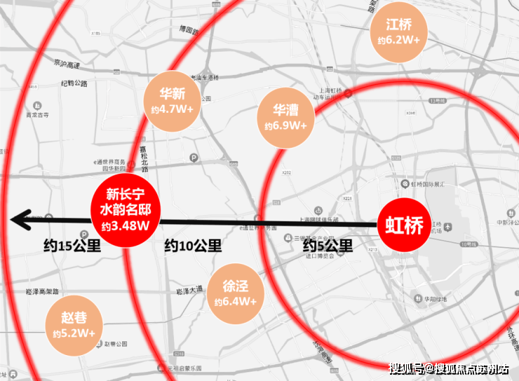 从新长宁·水韵名邸售楼处电话:400-8123-664 行驶到崧泽高架入口仅约1.5公里,可以直达虹桥商务区。