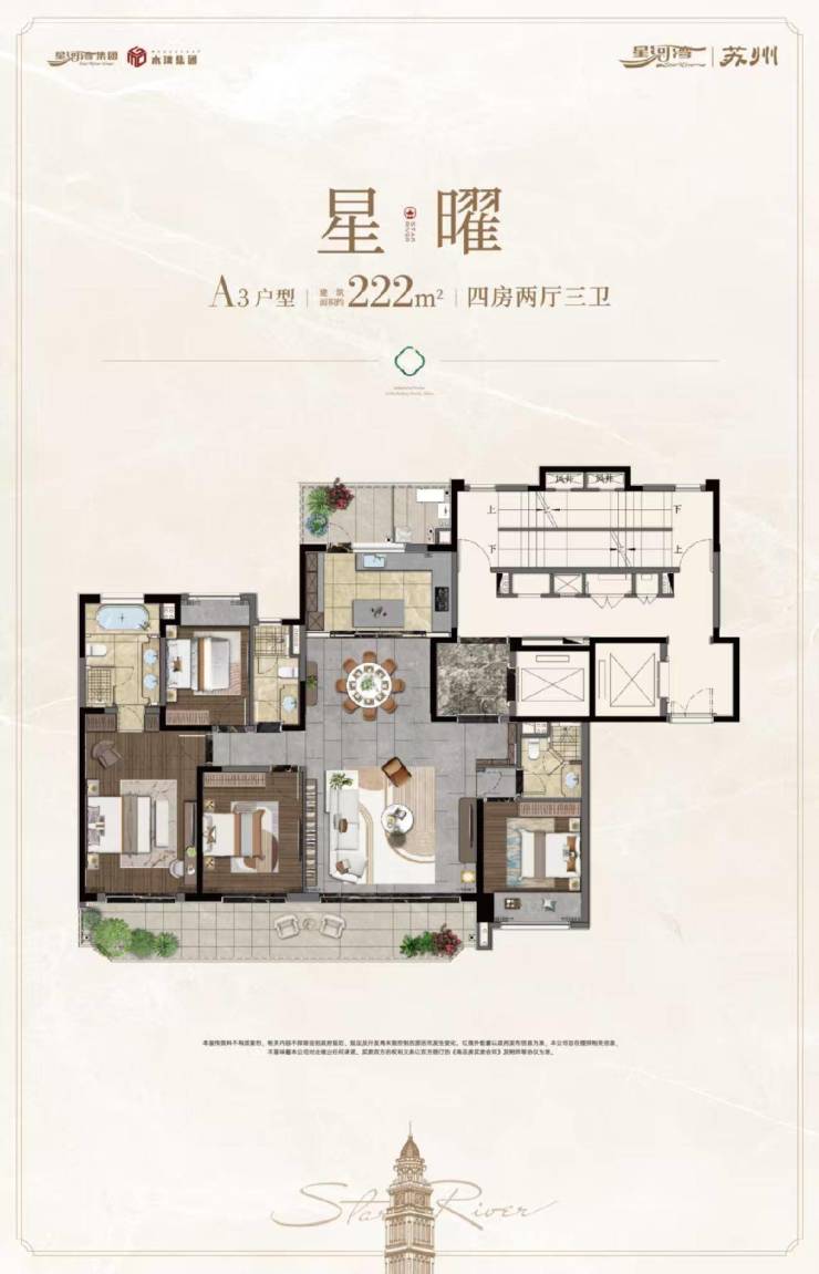户型鉴赏: A5户型|星玥|165㎡|四房两厅二卫 A4户型|星璟|188㎡|四房两厅三卫 A3户型|星曜|222㎡|四房两厅三卫 (更多户型信息,欢迎来电详询)