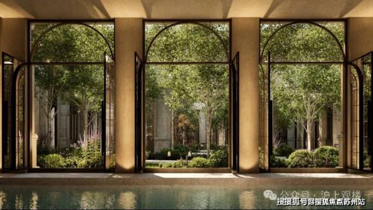 NO.8 花园泳池 波光潋滟处,拱形门窗外花影摇曳,一池春水将四季芳菲溶成流动的油画。