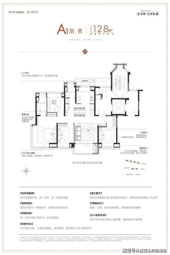 南向四大开间,精心铺排阔绰人生;X+1全龄空间,让家人各有其室,其乐融融;全屋7飘窗设计,赋予生活更多场景;主卧套房尊配衣帽间,时尚华服尽心收纳。