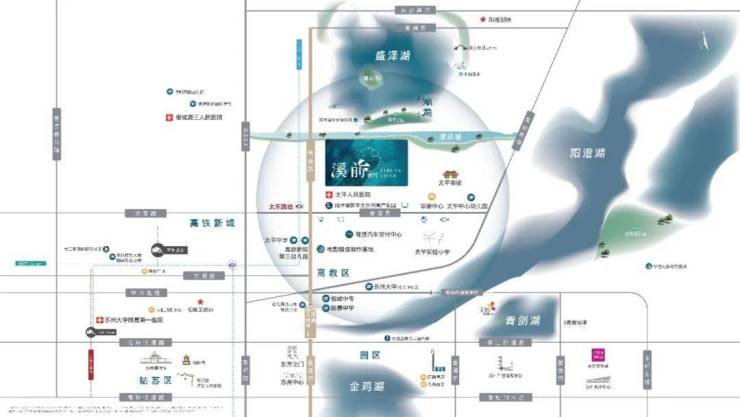 在高铁新城内部,政府特意规划了环盛泽湖片区作为生态宜居区。这里依托盛泽湖和阳澄湖这“苏州最后一片双湖”的稀缺景观,对标园区双湖板块进行打造。未来的北双湖区域,就是下一个“园区双湖”,将成为环境绝佳、配套齐全的高品质湖滨居住区。溪前雅居正坐落于此,占据了高铁新城内生态与发展的双重价值高地。