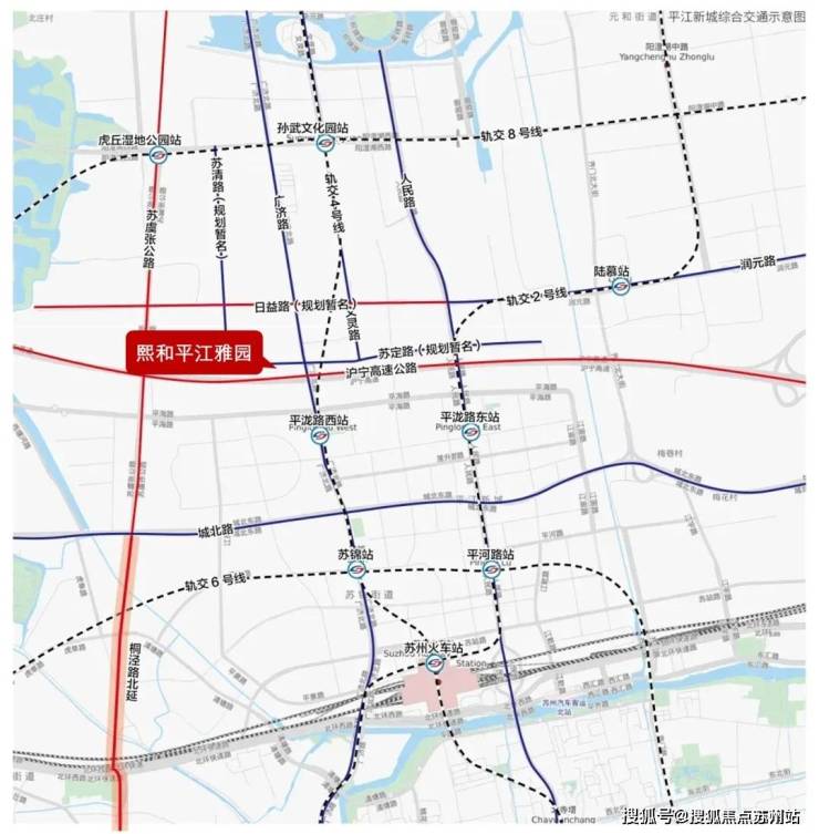 交通方面:平江新城已经有 4条轨交:2、4号线,6、8号线(在建),除此之外,苏州火车站、中环高架、高速等距离项目也就一两个红绿灯,不管去哪都非常方便。苏州熙和平江雅园售楼处电话400-8787-554