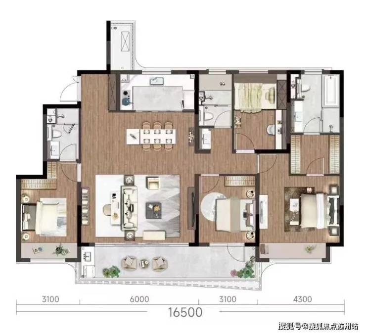当然,要是想直接一步到位,也可以适当垫一垫脚,去够稍大一些的建面约117平王炸户型。