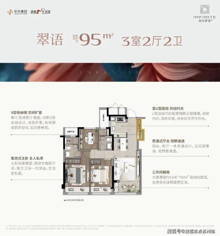 全盘共434套可售房源,只设置建面约95㎡、103㎡两个面积段,比大部分楼盘的起步户型节制了至少10㎡,足够省出一辆车了。同时,藉由“阳台只计一半面积”的优势,让每一套房子都有着90%以上的使用率!