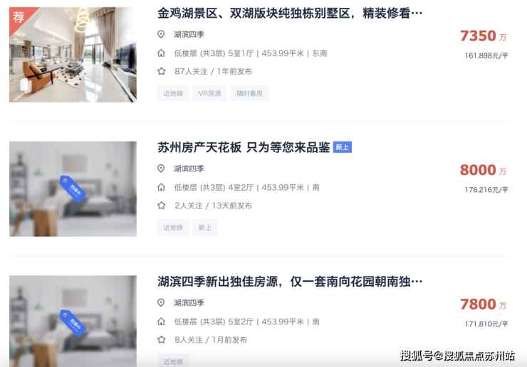 而湖滨四季背后的开发商——新鸿基地产,在苏州三大项目均在金鸡湖畔。除了临湖独栋湖滨四季外,还有苏州环贸广场ICC(含70年产权住宅ICC环贸汇)及品牌酒店——苏州四季酒店。