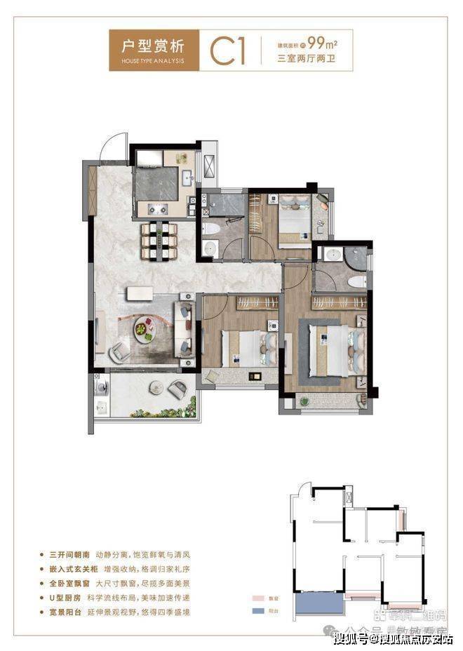 C1户型 建面约99㎡,三房二厅两卫中铁世纪尚城售楼处电话:400-8673-567