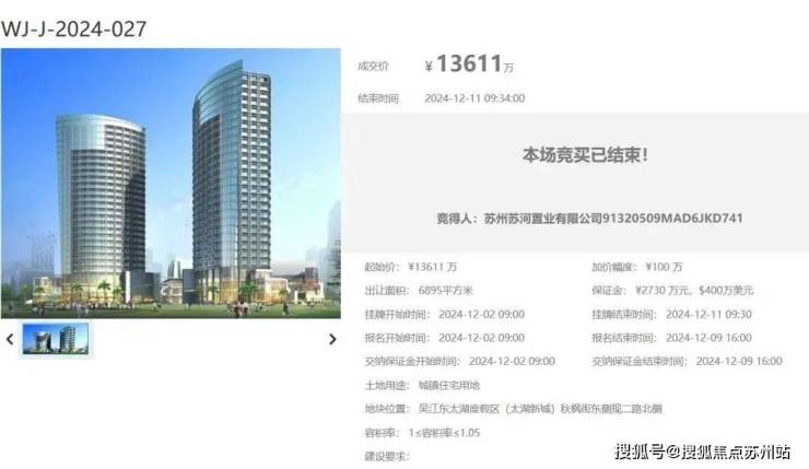 最终被吴江城建&绿城底价竞得,成交楼面价18800元/平!