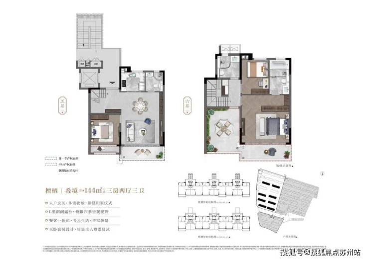 户型设计方面,户型建面约115-178㎡,有洋房约115/125㎡、平墅约147/155㎡、叠墅约144/162/178㎡多种选择。洋房采用餐厨客厅LDKB一体化设计,三开间或四开间朝南,主卧套房设计,卧室带飘窗。叠墅如三层叠加别墅为四房两厅四卫,三层空间设计,有LDKB一体化敞阔客餐厅、双主卧套房。