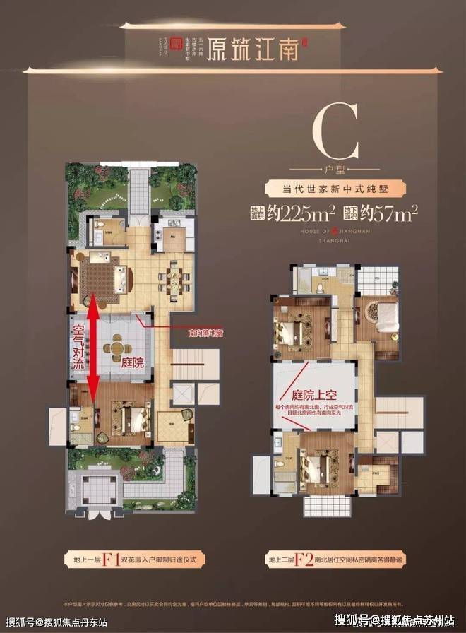 项目采用中式院落式布局设计,每家都能够享受私人庭院,以最小面积225平为例,在户型的中间部分,有一处围合式庭院,位于客厅、卧室的中间处,自家人的院落私密性极好。