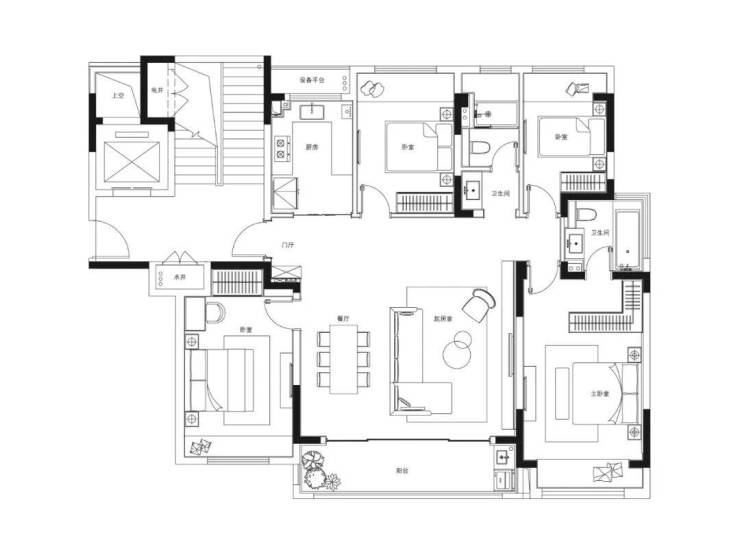 建筑面积约148㎡四房两卫: 改善家庭的理想选择,房间宽敞,主卧套房设计,带有瞰景阳台,居住舒适度和私密性都大大提升。