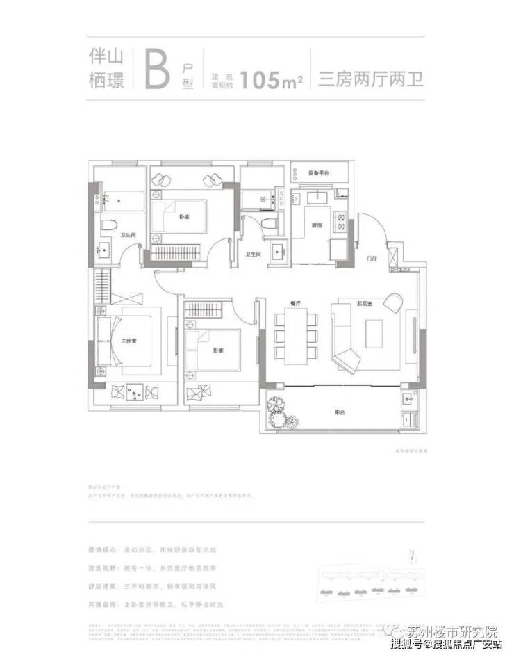 户型面积:建筑面积约105㎡3房2卫、建筑面积约148㎡4房2卫