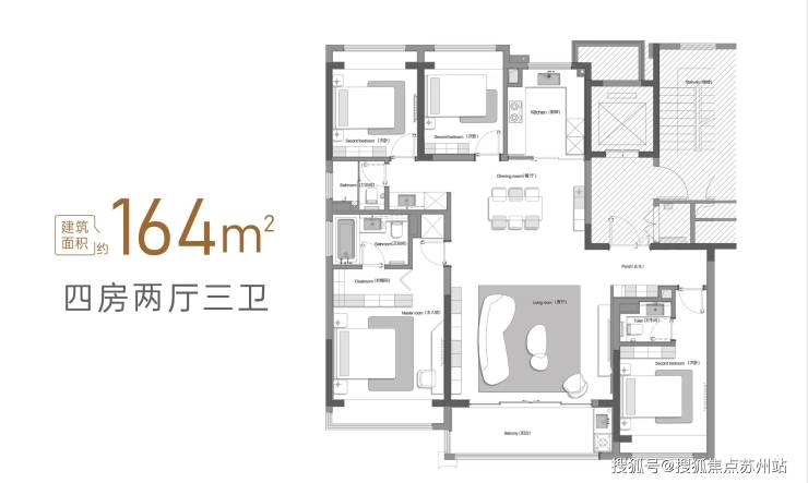 建面约180㎡:四房两厅三卫,可媲美大平层,约6米餐客厅、约9m的大阳台,尺度感拉满,独立家政间、“小家化”的主卧套房都是保利姑苏瑧悦的设计巧思,引领宽居进入平墅时代。