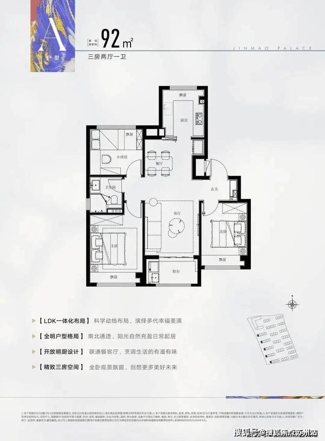 产品户型:92平3房2厅1卫、100平3房2厅2卫、135平4房2厅2卫、叠加