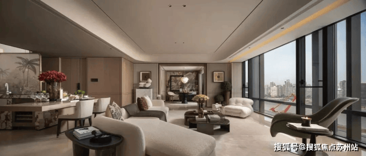 ·建面约240㎡边套,采用L型转角落地窗,打造了270°环幕瞰江视野,无论身处客厅、餐厅,都能以不同角度眺望黄浦江的波光粼粼。