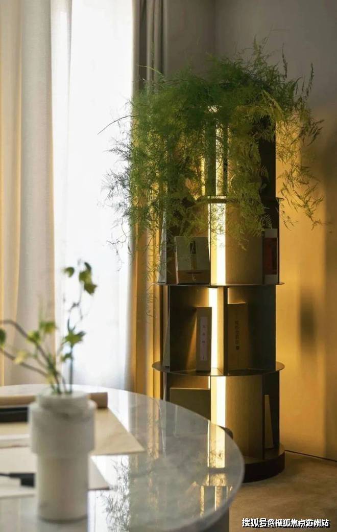 在整个居所中,随处可见的绿色植物实际上是通过精密的布置安放,让人走到哪里,不会有种毫无规章的体验,反观在需要的地方摆上那一抹亮丽的绿色,起到了画龙点睛的作用。