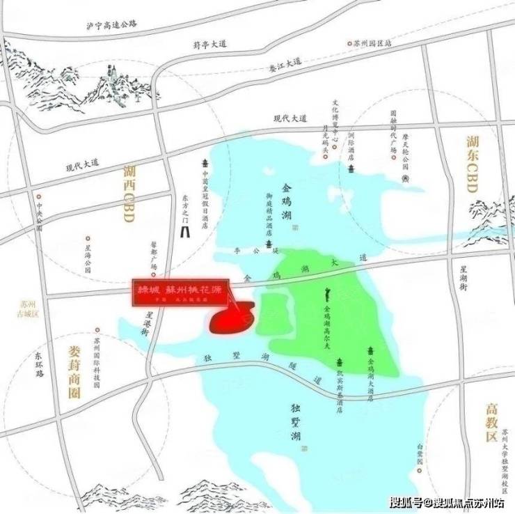 商业上,融创苏州桃花源项目周边环伺着五星级大酒店,如金鸡湖大酒店、凯宾斯基大酒店等。