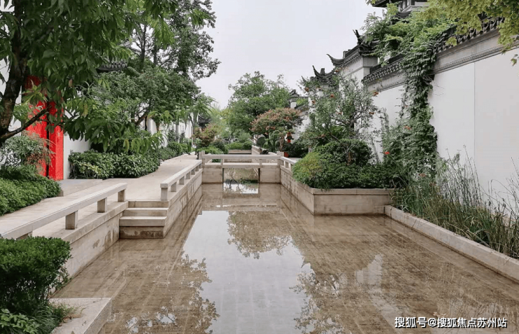 据资料介绍,其复刻的是北宋苏州平江古城规划理念,引23万㎡天然湖水入园,包括南北主轴、东西水巷、八座园林、“春夏秋冬”四季院组团等布造,此造园手法,在中国独一无二。