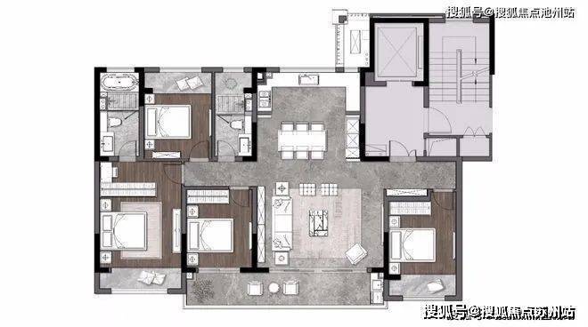 在洋房建面约265㎡的户型上,我们看到了苏州精装的天花板。