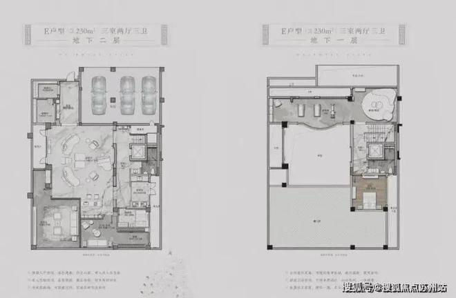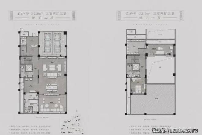 以项目东北角的建面约330㎡H户型为例,地下二层的室内可配置保姆房、