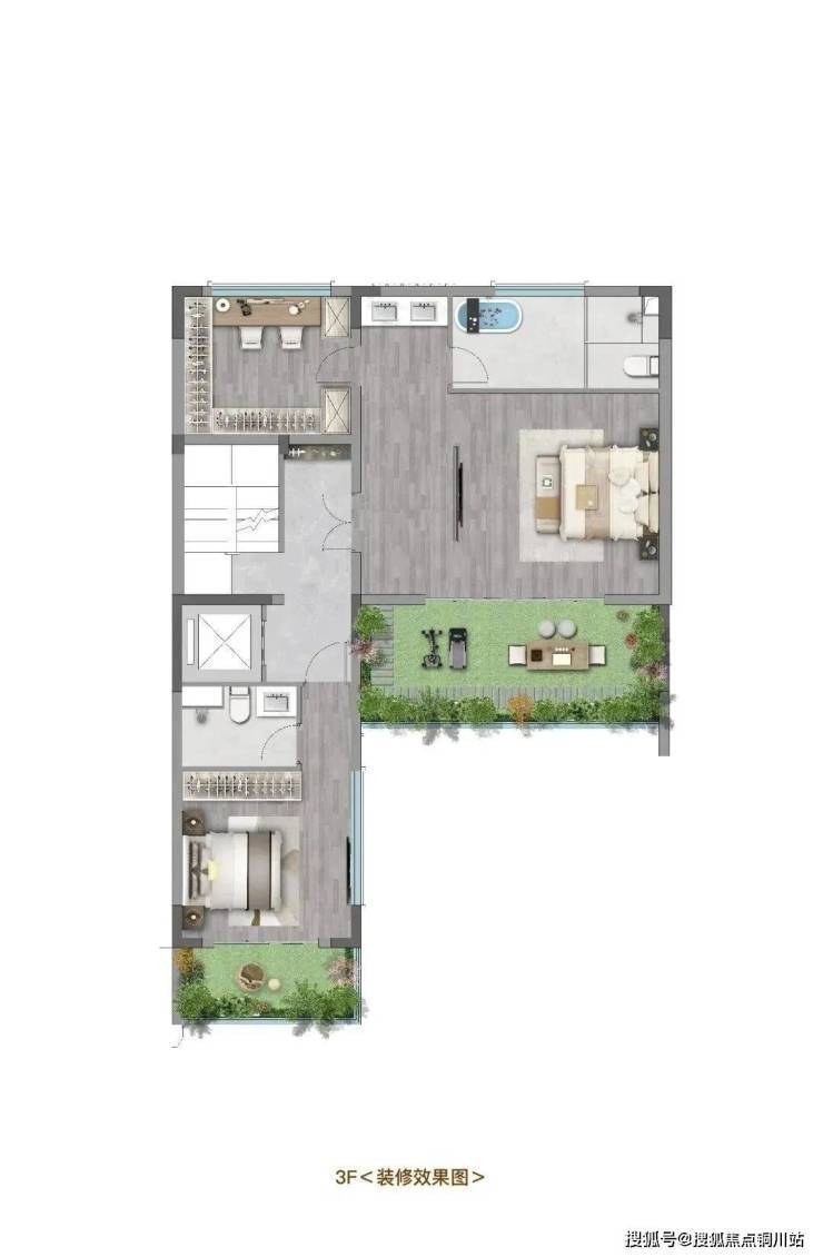 约70㎡星空露台,延伸生活场景,尽享自然景致.可打造成空中花园、茶室、健身房等多种生活场景,实现真正意义上的空中“百变场域”.
