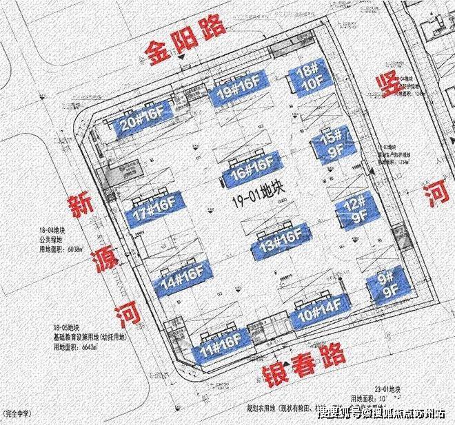 19-01地块规划:拟建7栋16F高层住宅、3栋9F高层住宅、1栋14F高层住宅、1栋10F高层住宅以及若干配套用房, 规划住宅套数下限622套。