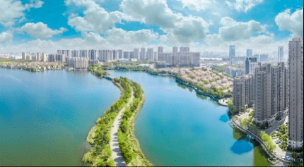 【 百湖之城 生态宜居住区】汾湖拥有得天独厚的自然宜居禀赋,区域内有143个天然湖泊,其中重点保护湖泊约26个,水域覆盖率达到40%,绿化率高达42%,形成了以洋砂荡为中心的最具活力“城市核心蓝绿带”。
