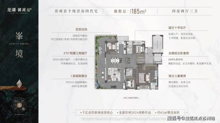 龙湖未来御湖境位于相城区高铁新城,具体地址在相城大道东、陶村街北。这个项目由龙湖集团与轨道交通联合开发,占地约5.2万方,容积率1.6,总建筑面积约12.4万方。项目拟建16栋9+1F-11F住宅,部分带有顶复,户型配置从建筑面积约125㎡到185㎡不等,精装标准最低2500元/平,整体备案均价约29000元/㎡。售楼处电话:18662309054。