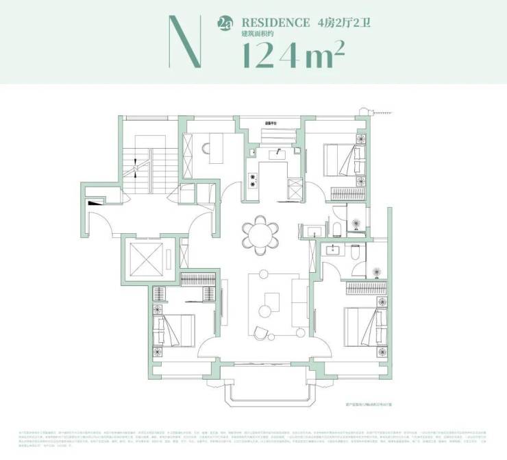 约153㎡户型设计:极致观景,西瞰江景,东瞰园景!4房功能齐备!