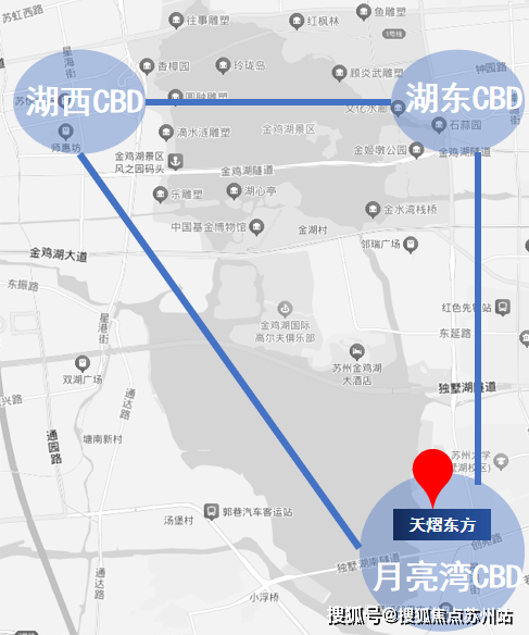 而天熠东方所处的“黄金三角”区域,由湖西CBD、湖东CBD和月亮湾CBD共同构成双湖CBD城市共生体,更是这片高地上的核心所在。