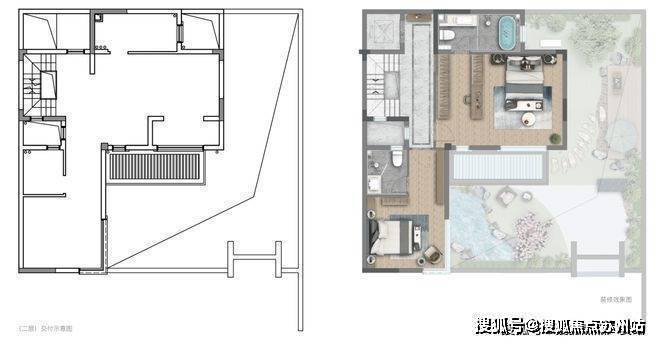 ☝明煦源赋里中式合院部分户型效果图,露台下为灰空间