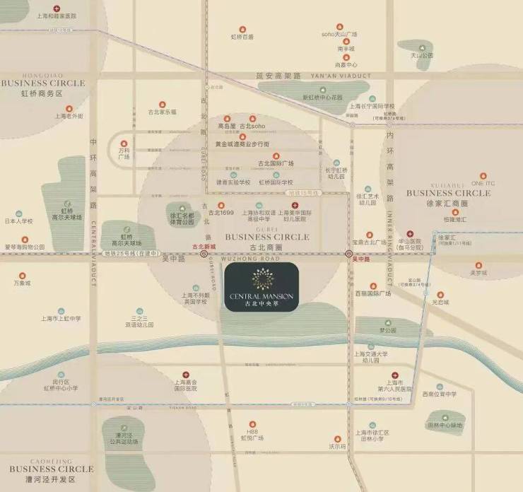 项目雄踞闵行金虹桥、内中环间,吴中路与古北路交汇处,直接共享古北国际社区成熟配套.