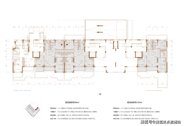 建面约120㎡3房2厅2卫/90㎡2房2厅2卫(一层下叠):