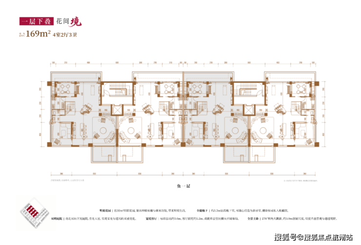建面约169㎡4房2厅3卫(一层下叠):