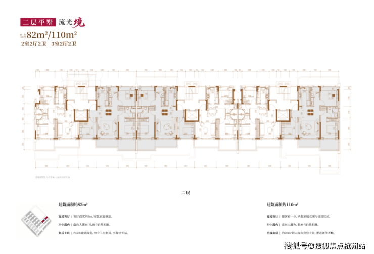 建面约82㎡2房2厅2卫/110㎡3房2厅2卫(四层上叠):