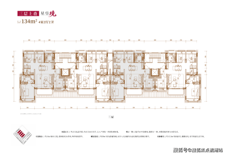 建面约134㎡4房2厅2卫(三层上叠):