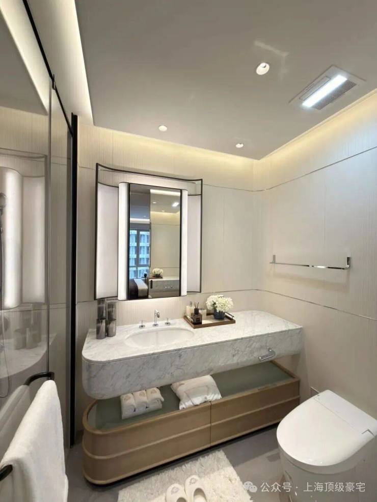 双台盆豪华主卫,带大尺度淋浴空间,同样采用了弧形设计: