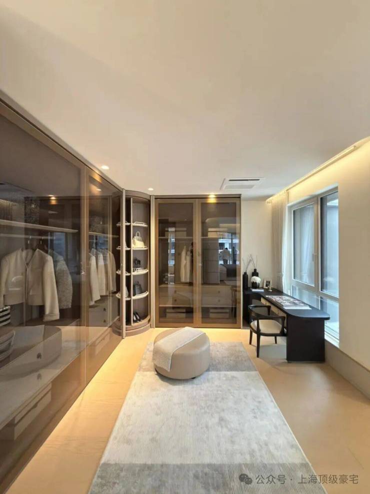 超豪华主卧大面积衣帽间,有专属X空间可以拓展多重功能,比如办公、阅读、品茶等: