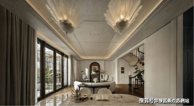 低密墅区为奢阔场景营造提供了先天优势。从大门开始,保利·外滩序的豪宅仪式感就扑面而来。据悉,在别墅组团单独设计了专属入户,给予业主“独一份”的尊崇感。入户两侧有两棵价值不菲的红花继木,春季变红,寓意“吉祥如意”。材质上也无不透露着贵气,立面是白玫瑰奢石,地面铺装的是慕尼黑大理石,顶部还特别运用了透光云石做了一个灯光设计,到了夜晚,灯光会穿透光云石洒向地面,很是惊艳。