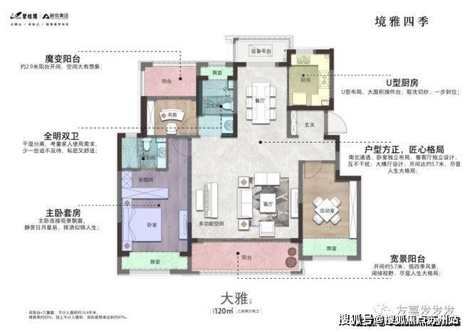 境雅四季以其独特的美的中央空调、德国威能地暖和法国爱的士新风系统闻名于业界.这个高端住宅项目位于高层98㎡/洋房120、130㎡的宽敞空间中,让您尽享至尊舒适.