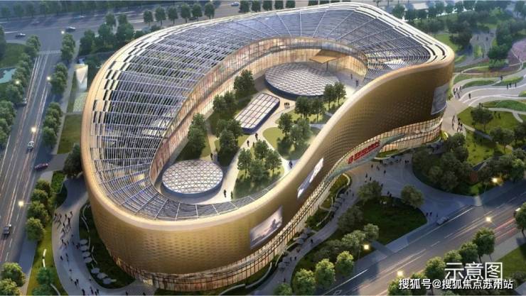 项目建筑为现代极简风格,外立面采用多彩真石漆+香槟金色铝合金线条,顶部的塔冠设计是标志性特点。