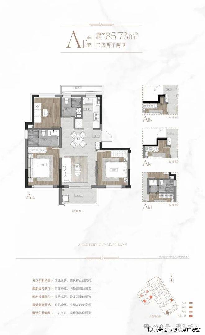 若说联排是对"墅居仪式感"的诠释,那么少量珍藏的装修洋房,则是对"年轻生活方式"的回应。建面约86㎡3房洋房,以飞机户型、南北通透的经典格局,重新定义了"小面积多房间"的可能性。
